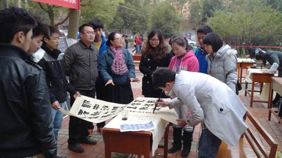 此次比赛的项目有硬笔、粉笔、毛笔三项内容。比赛分为三个阶段,第一阶段是硬笔字,时间20分钟;第二阶段是粉笔字,时间20分钟,大家纷纷拿出公司准备的小黑板,精心书写;第三阶段是毛笔字,时间40分钟,也是最精彩的阶段,吸引周围同学驻足观看,经管公司的陈大作同学马上临时报名挥毫泼墨。本次参赛选手达到70余人。最终评选出一批优秀作品给予奖励,并展示于六教大厅。