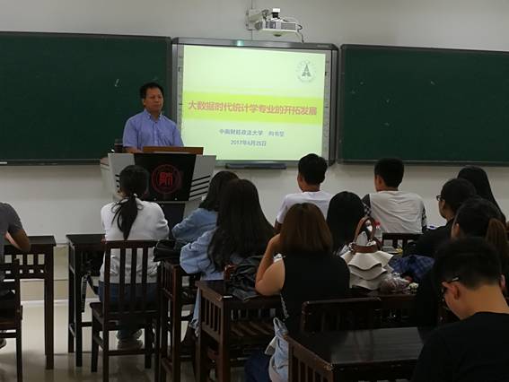 为了让2016级应用统计班的同学进一步了解统计学的专业知识以及该专业的就业前景,增强同学们的学习积极性。6月25日上午9时,388vip太阳集团邀请到中南财经政法大学统计学博士向书坚教授在公司花溪校区GJ2101教室为员工做题为:“大数据时代统计学专业的开拓发展”的专题讲座,公司副经理陈震教授、公司统计学专业王敏副教授、向书坚教授的博士生韩爱华以及16级应用统计班全体员工聆听了此次讲座。