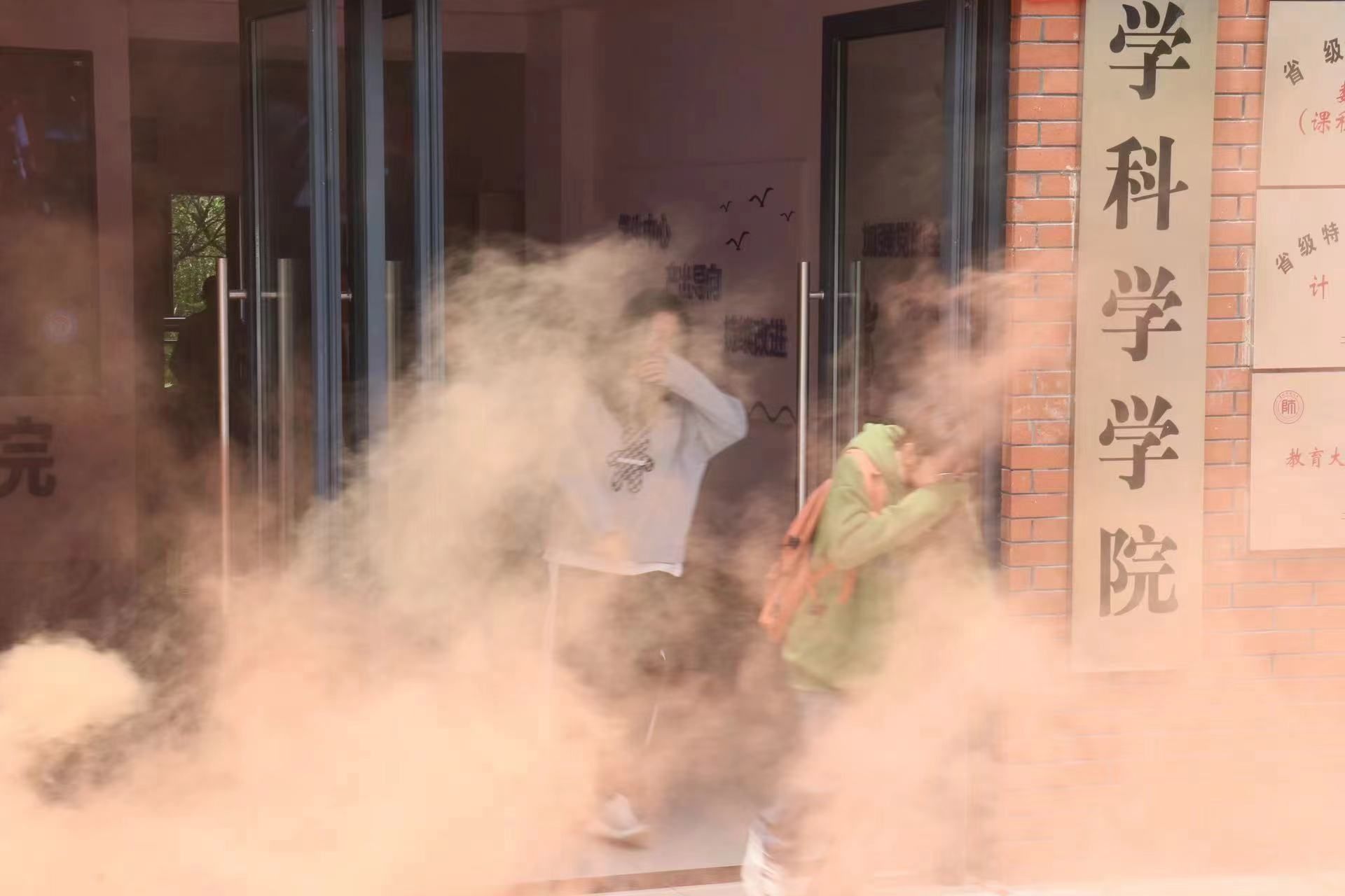 在应急疏散演练环节,辅导员首先对参加演练的员工进行了防灾减灾知识普及,交代了逃生路线和注意事项,并组织员工观看了防灾减灾宣传视频。演练开始时,388vip太阳集团教学楼内烟雾四起,警笛骤响,同学们在辅导员和保卫处工作人员的引导下,按照既定路线和火场逃生的自救互救方法,迅速从模拟火场疏散到教学楼外空旷地带。
