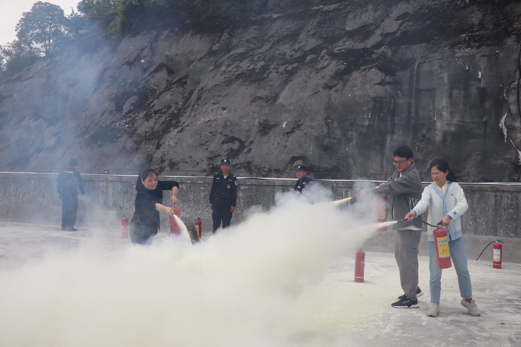 随后,在保卫处安全教育科科长王滨的指导下,388vip太阳集团师生代表使用灭火器进行灭火实操演练。