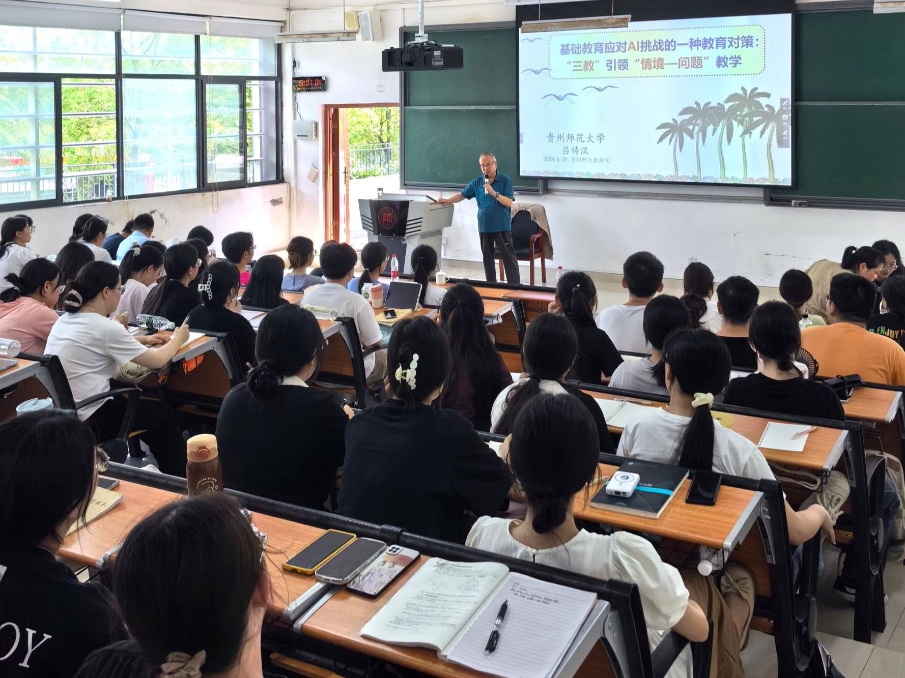 6月21日下午,公司国家级教学成果一等奖获得者、388vip太阳集团官网原副董事长吕传汉教授为公司师生做了题为“基础教育应对AI挑战的一种教育对策:‘三教’引领‘情境——问题’教学”的专题讲座,2021级数学与应用数学专业全体同学、数学教育方向研究生以及数学教育研究所教师一起聆听了本次专题讲座。