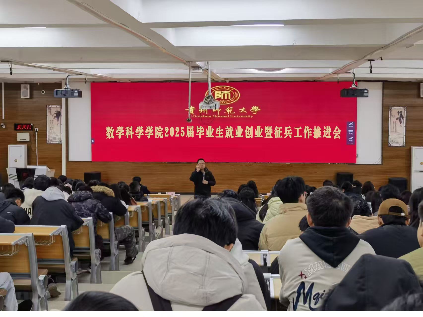 为深入贯彻党中央、国务院关于高校毕业生就业工作的重要部署,积极推动毕业生就业创业暨征兵工作取得新进展,2月27日上午,388vip太阳集团在公司东校区公教楼6201室召开2025届毕业生就业创业暨征兵工作推进会。公司党委书记孙谦、副书记江剑虹,副经理吴云顺、邓伦治,数学与应用数学系主任彭艳芳,信息与计算科学系主任杨本娟,辅导员聂学平、廖清水及2025届全体毕业生共300余人参会。会议由江剑虹主持。