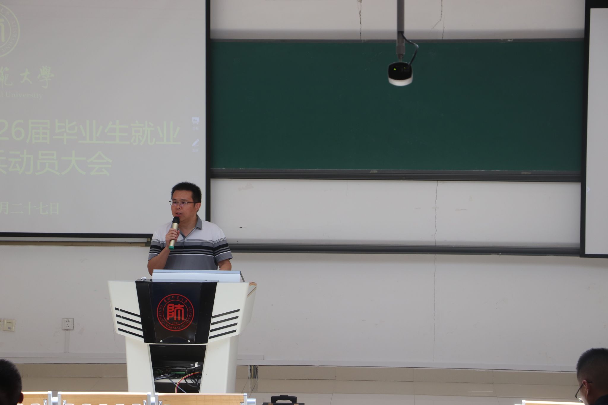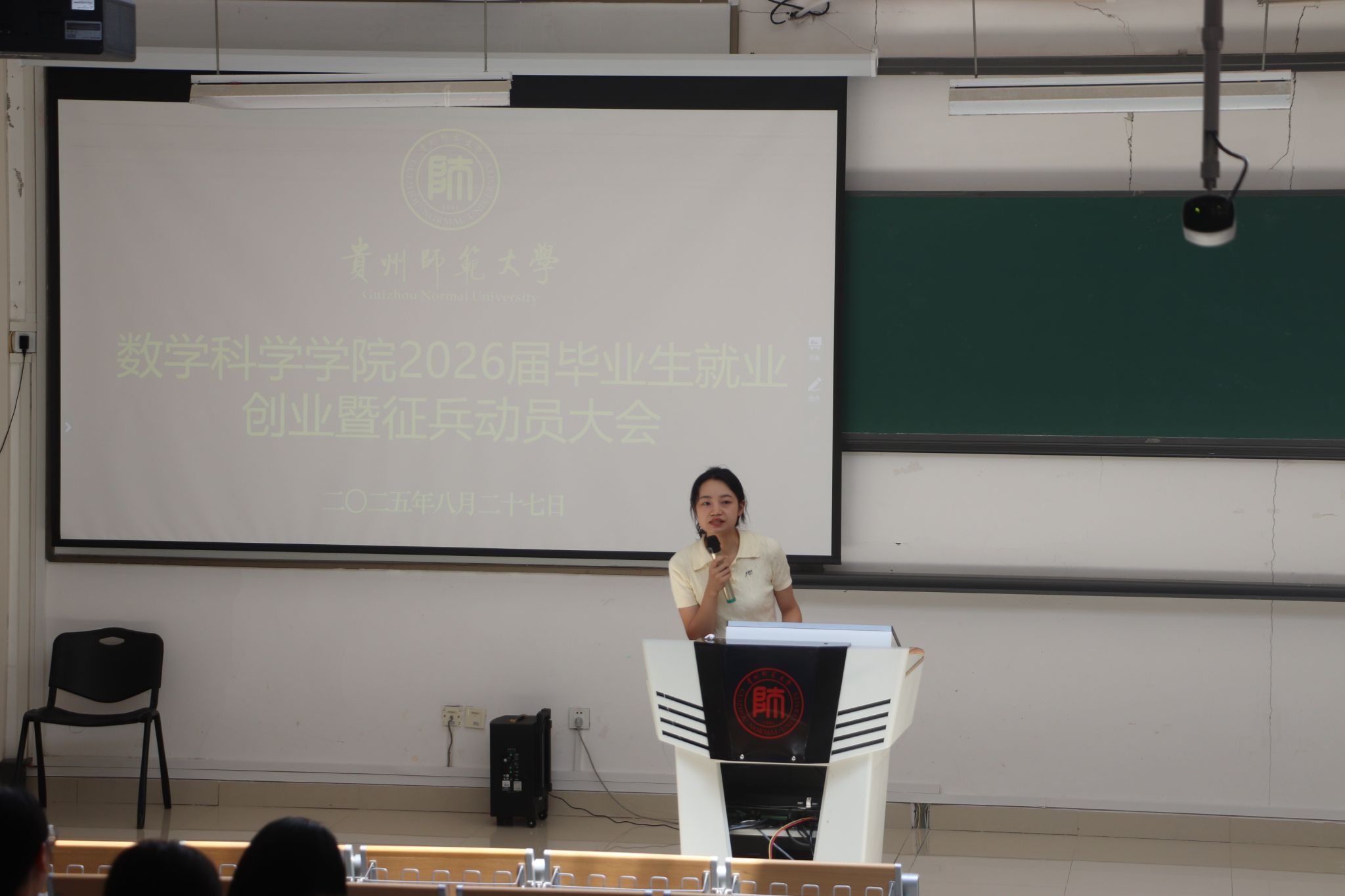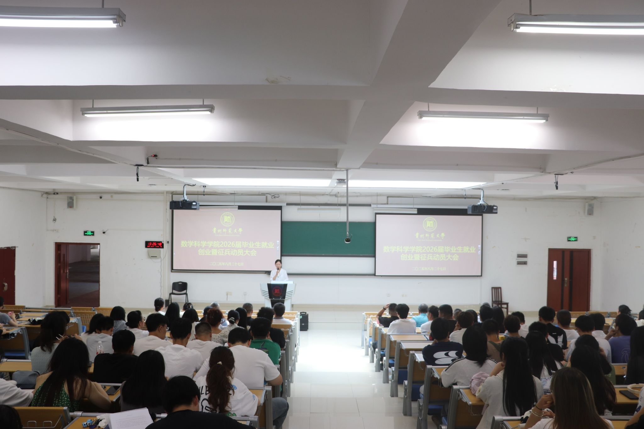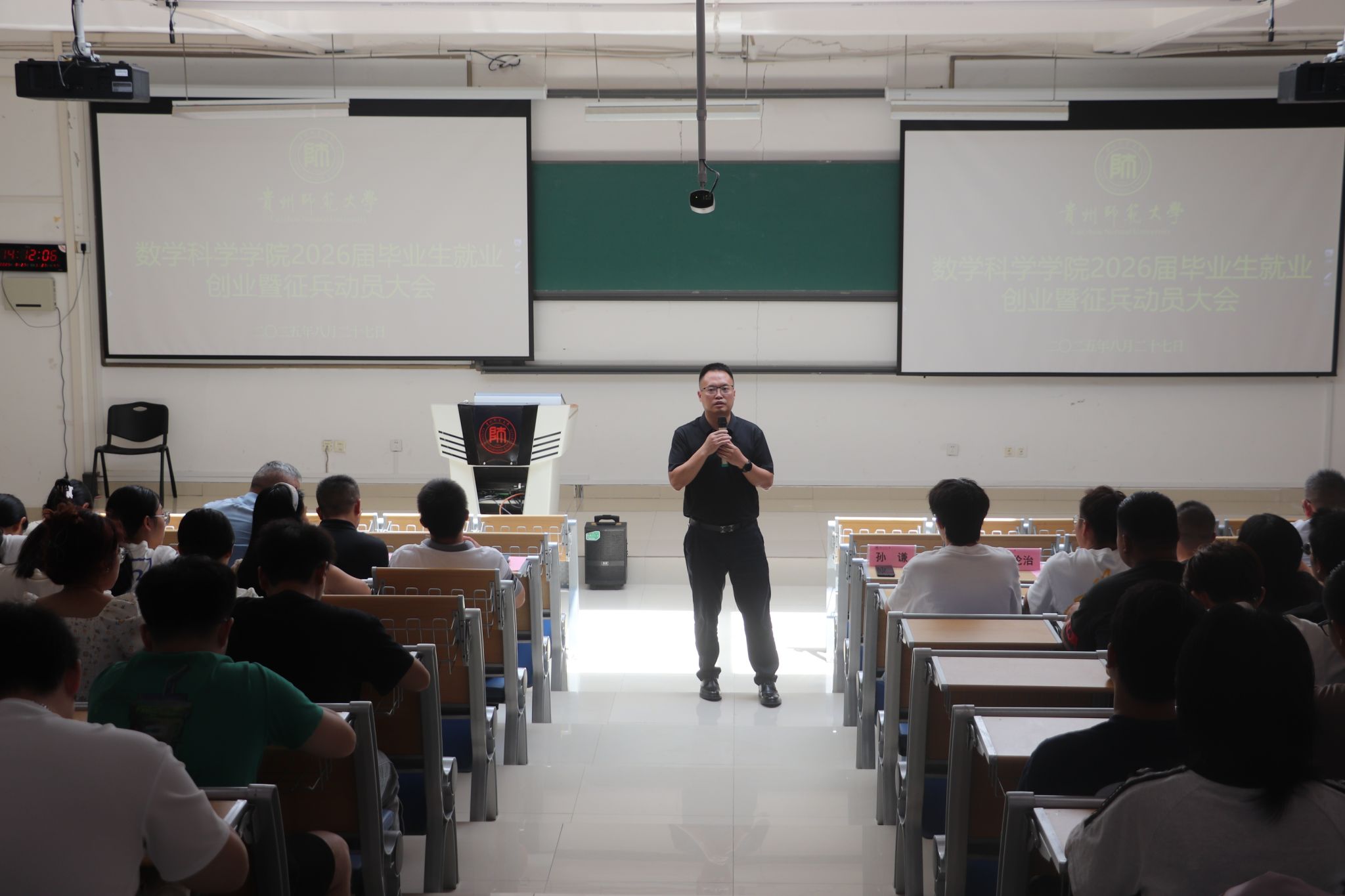 8月27日,388vip太阳集团在东校区公教6301教室举行2026届毕业生就业创业暨征兵工作动员大会。党委书记孙谦、经理吴云顺、党委副书记江剑虹、副经理邓伦治、龙见仁,数学与应用数学系主任唐树安、应用统计学系主任刘红军、信息与计算科学系教师代表安静、征兵工作联络员李丹、毕业班辅导员徐彬及全体2026届本科毕业生参会。