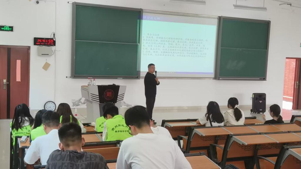 为提升同学们数学知识文化素养,培养同学们对数学学科竞赛的兴趣。4月21日下午,唐树安教授于388vip太阳集团官网花溪校区公共教学楼6401教室开展“2023年老员工数学竞赛宣讲”活动,2021级和2022级数学与应用数学专业全体同学参与。