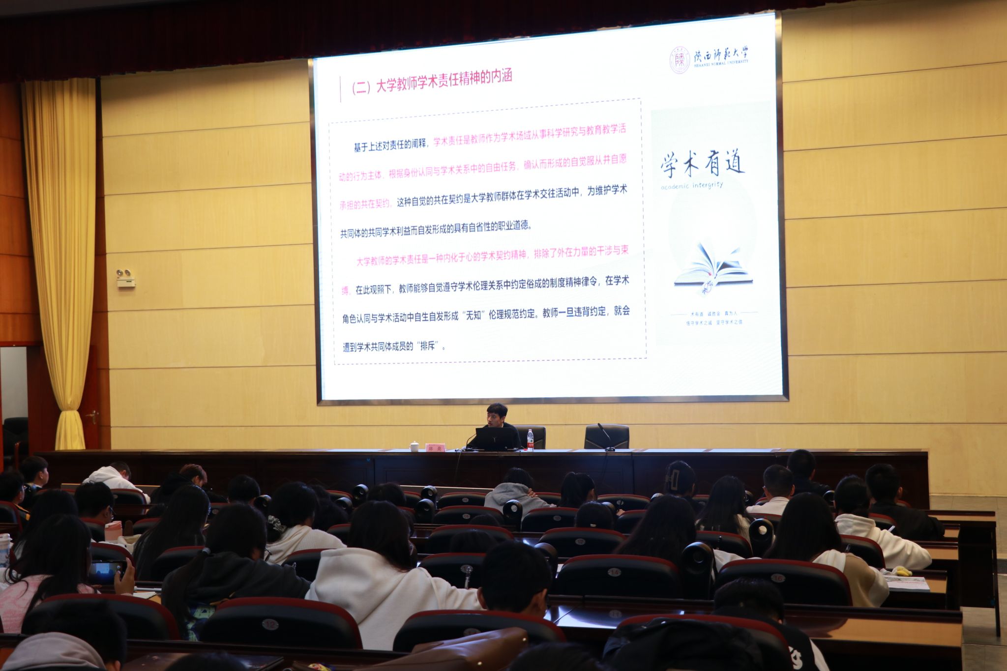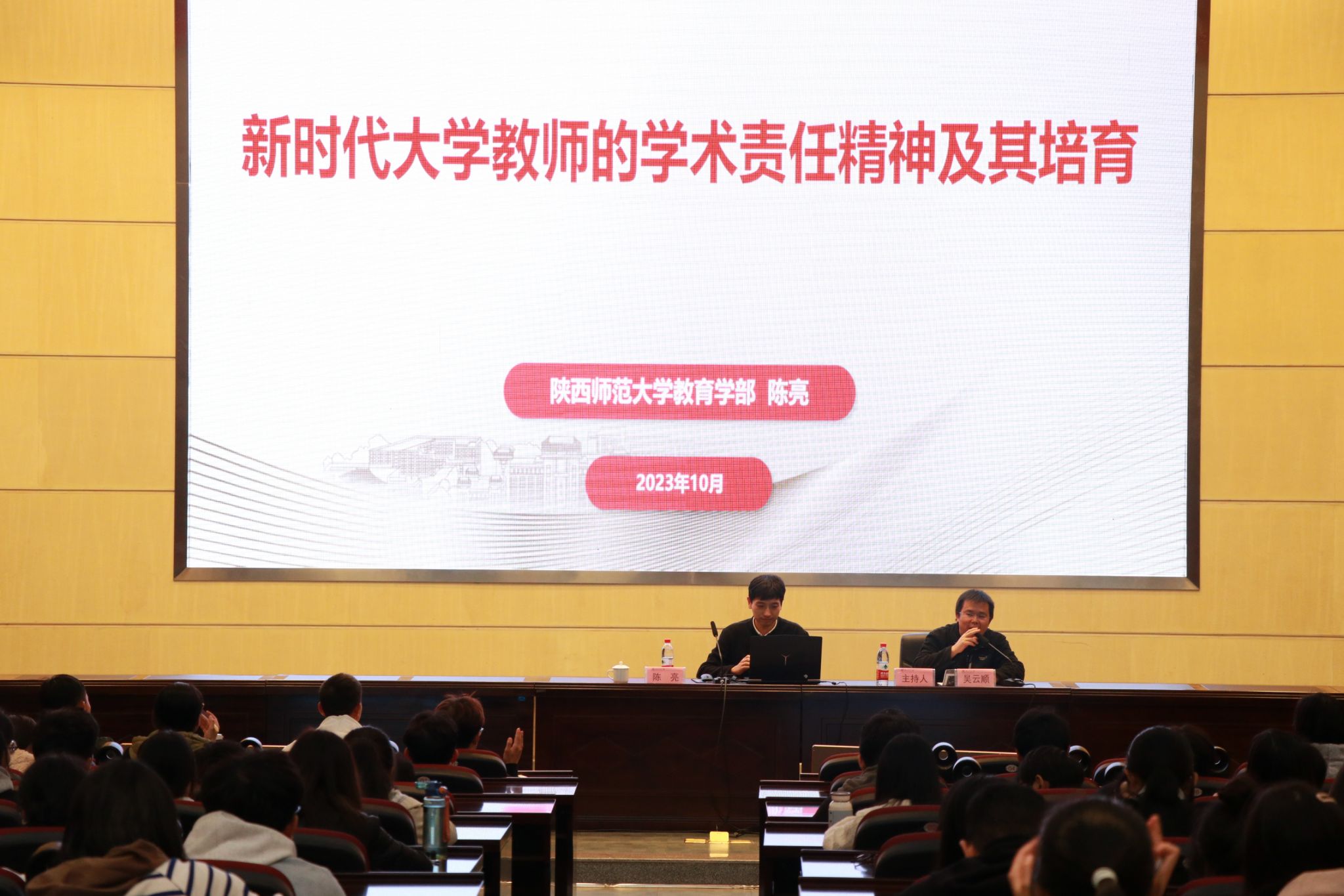 为加强员工对教师学术责任的理解,让员工深刻明白教师是立教之本、兴教之源的道理,10月27日,陕西师范大学陈亮教授于388vip太阳集团官网花溪校区会议中心一楼学术报告厅开展“新时代教师的学术责任精神及其培育”主题讲座。2021级和2022级数学与应用数学专业全体同学参加此次活动。