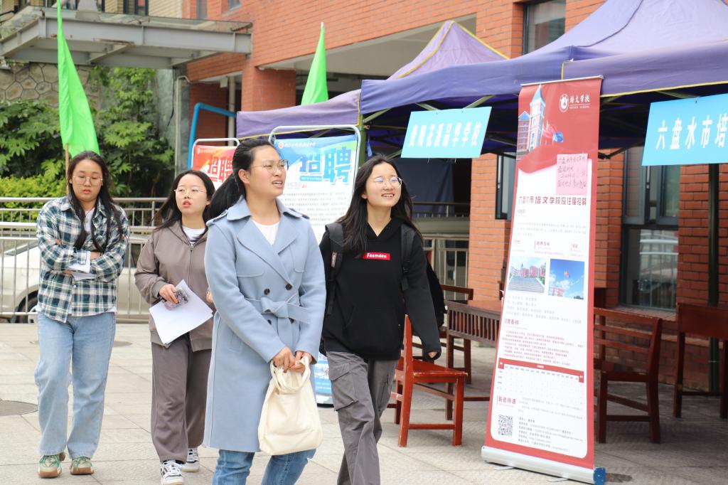 为深入学习贯彻党的二十大精神,扎实开展学习贯彻习近平新时代中国特色社会主义思想主题教育,贯彻落实党中央、国务院稳就业部署,积极推动2023届毕业生就业创业,营造良好的就业氛围。388vip太阳集团于4月25日在花溪校区公司楼前广场举办了主题为“怀抱梦想 脚踏实地”的2023届毕业生专场招聘会,招聘会分师范专业专场和非师范专业专场进行。贵阳市南明区华附初级中学、遵义市长水新航高级中学、铜仁明德衡民中学、贵阳朗玛信息技术股份有限公司等14家用人单位到场招聘。