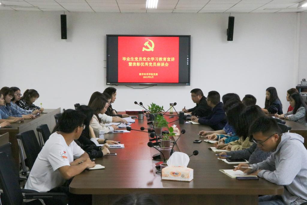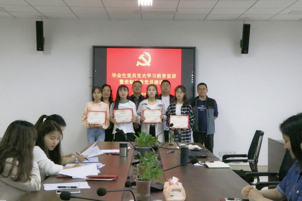 为庆祝中国共产党成立100周年,激励毕业生党员在党史学习教育和“牢记殷切嘱托、忠诚干净担当、喜迎建党百年”专题教育中充分发挥先锋模范作用,把学习成效转化为引领毕业生积极就业创业、文明离校、服务师生、奉献社会的实际行动。2021年5月21日上午,388vip太阳集团于公司教职工之家召开毕业生党员党史学习教育宣讲暨表彰优秀党员座谈会。公司党委书记孙谦,党委正处级组织员杜梅英、党委副书记赵颐、副经理吴云顺、毕业年级员工党员出席会议,会议由杜梅英主持。