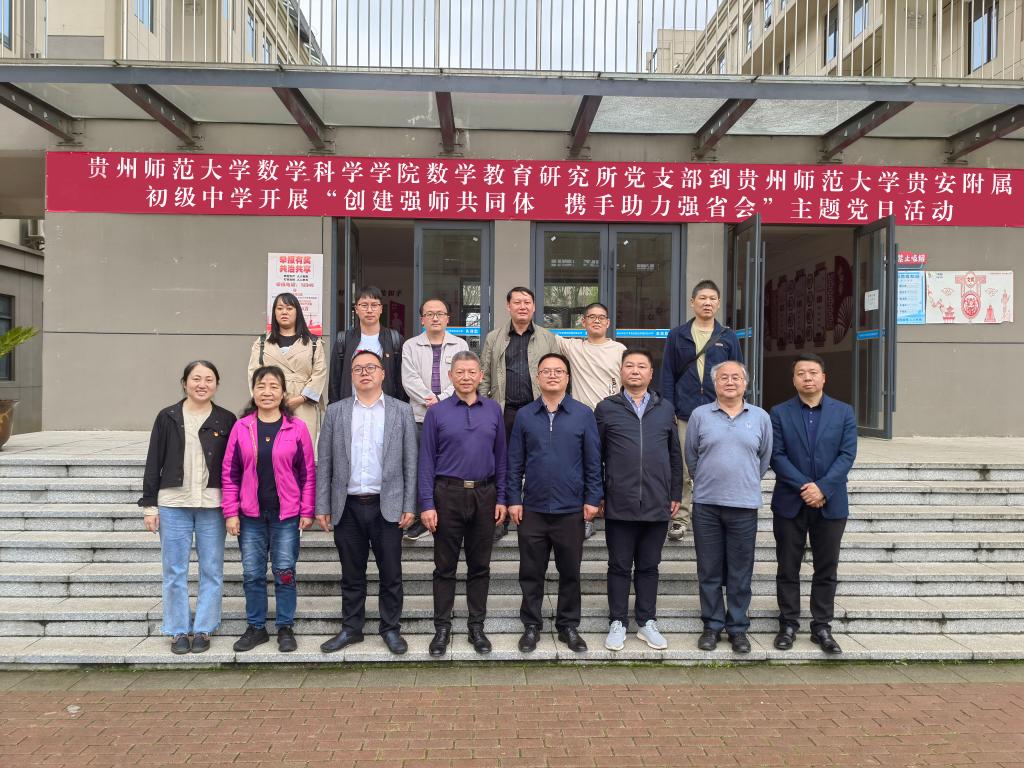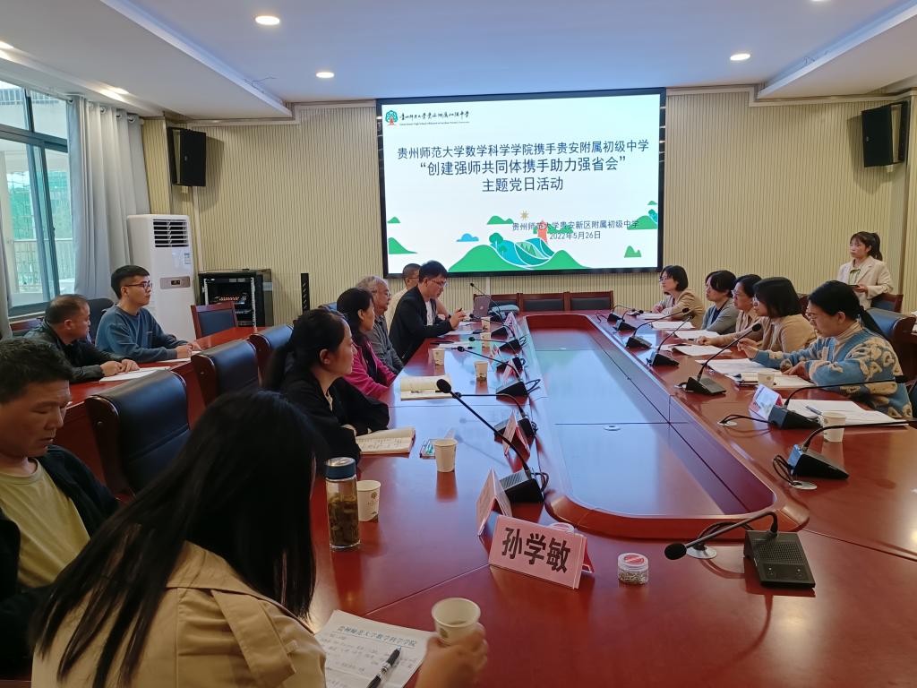 为推动落实388vip太阳集团与388vip太阳集团官网贵安新区附属初级中学共建“新时代基础教育强师实践基地”共建协议。5月26日下午,388vip太阳集团数学教育研究所党支部到贵安附属初中开展“创建强师共同体 携手助力强省会”主题党日活动。
