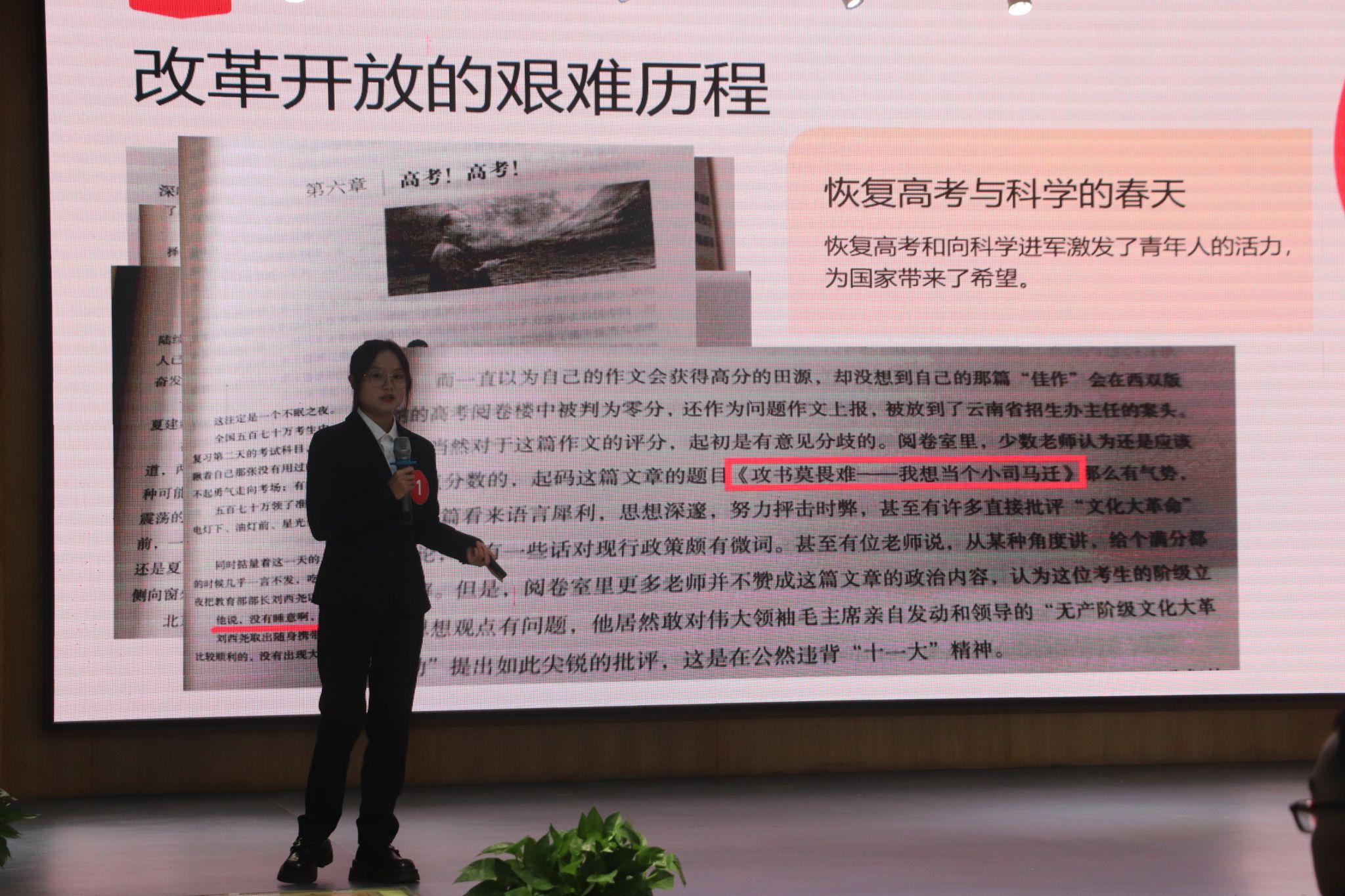 活动前期公司员工党建中心和公司团委对读书分享内容进行初选后,推荐了10名同学进行现场分享。活动伊始,主持人对此次活动出席的评委、参赛人员及同学们表示热烈欢迎,并介绍比赛规则和流程。参赛选手按照抽签顺序依次上台进行分享,10位分享人员通过PPT展示和现场讲解的方式分享了红色书籍《历史的转折中的邓小平》、《跨过鸭绿江:抗美援朝影像记忆》、《苦菜花》、《毛泽东选集》、《习近平的七年知青岁月》、《红色家书》、《长征》、《红岩》、《改革开放简史》、《红星照耀中国》。分享过程中,同学们纷纷畅谈了自己的阅读体会:有对书中情节的细腻描绘,也有对作者思想的深刻剖析;有对书中人物经历的生动描述,也有对书中理论观点的分析解读。整个分享会现场气氛活跃,不时响起阵阵掌声。