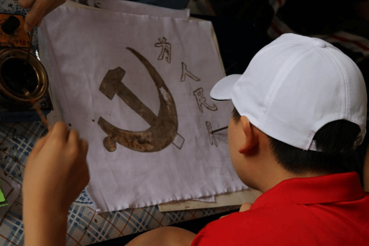 非遗之魅,“蓝白之约”。7月15日,在“小手牵大手,共承民族文化情”民族文化学习期间,志愿者们在黄果树思源公司老师和该校员工社团员工代表的指导和帮助下,以白麻为底,以铜刀作笔,以蜂蜡为墨,以靛蓝为引,在点、画、勾、涂的布蜡过程中,点蜡成花——盛开在民间的非遗艺术之花,感受醉美山水黔中布依族蜡染的独特魅力。