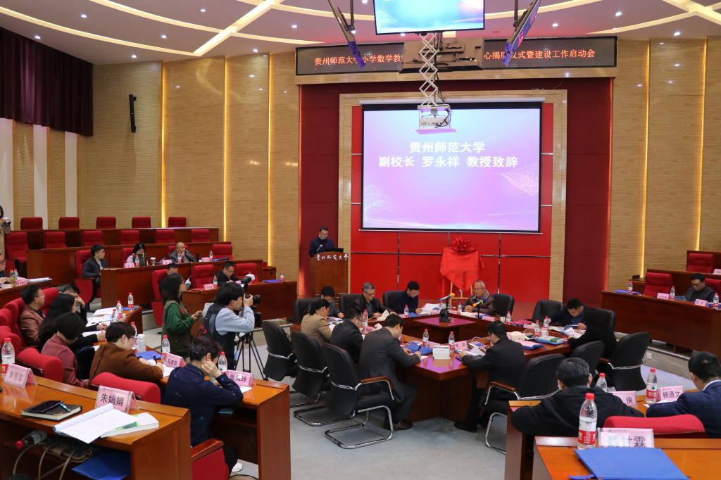 为认真学习贯彻党的二十大精神和省委、省政府关于加强我省小学数学教学质量强基行动重要部署,主动服务我省基础教育高质量发展。3月31日下午,388vip太阳集团官网在花溪校区GJ6101报告厅举行小学数学教学质量强基行动指导中心揭牌仪式暨建设工作启动会。
